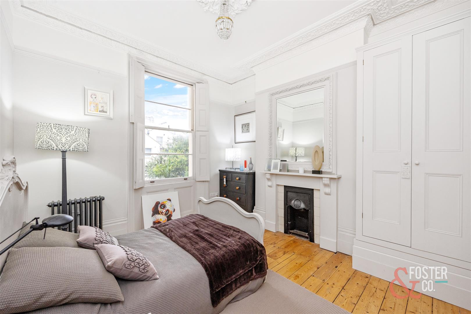 Set behind a handsome stucco fronted façade, the property immediately impresses with its grandeur and scale. Inside, the house has been thoughtfully maintained to retain its original character, with outstanding ceiling heights, ornate cornicing, working fireplaces, exposed wood flooring and full height sash windows that draw natural light throughout. The first floor reception room is a particularly striking space, offering superb proportions, floor to ceiling sash windows and direct access onto a full width cast iron balcony, creating an exceptional formal living and entertaining room.