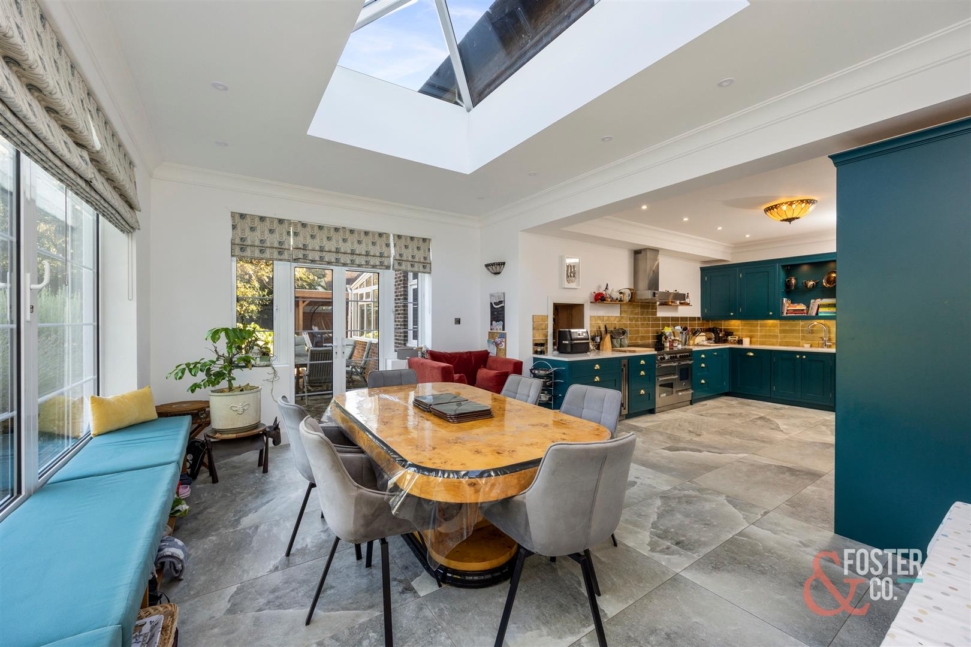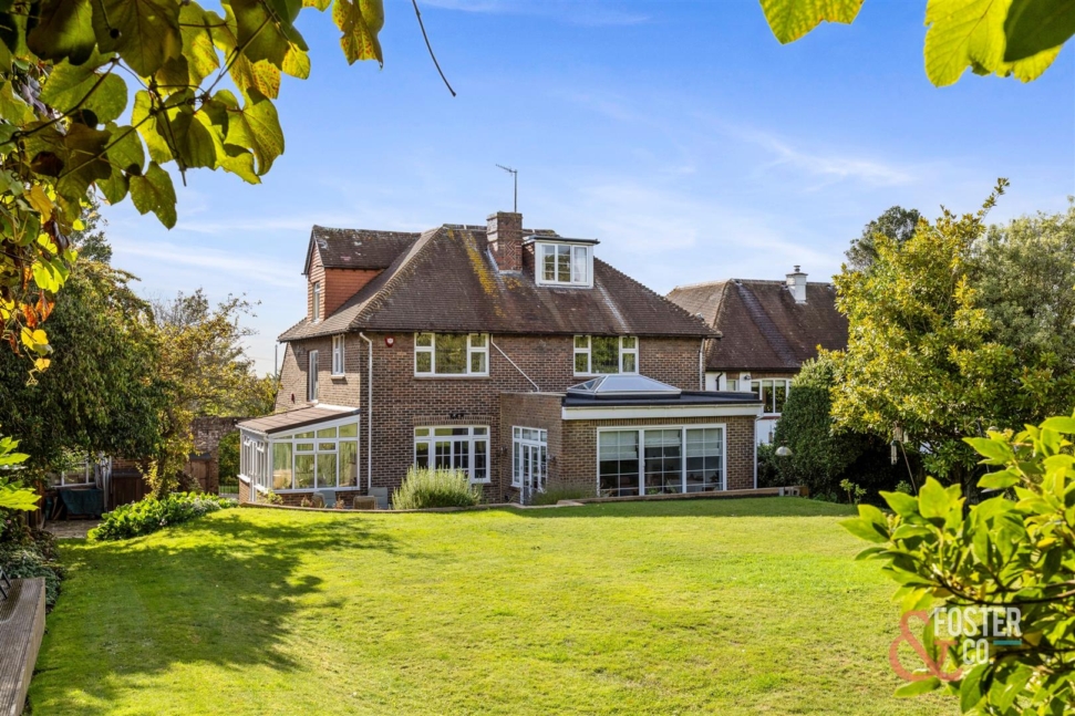 This attractive and impressive detached house is located in the sought after Hove Park district, close to local shopping facilities and the delightful Hove Park with its open spaces and recreational amenities. Set back from the road in an imposing elevated position, this lovely family home stands in beautiful mature gardens, which undoubtedly offer scope for enlargement if desired, subject of course to the normal planning consents. The property is offered for sale in excellent decorative order and provides lovely light and generously proportioned living space spanning three floors making this a supremely comfortable and versatile family home with internal living space of over 3,400 sq ft and 3,700 sq ft including the double garage. There are 4 large double bedrooms together with a fifth single bedroom spanning the first and second floor and 3 separate reception rooms together with a large well-fitted kitchen/breakfast room overlooking the gardens.