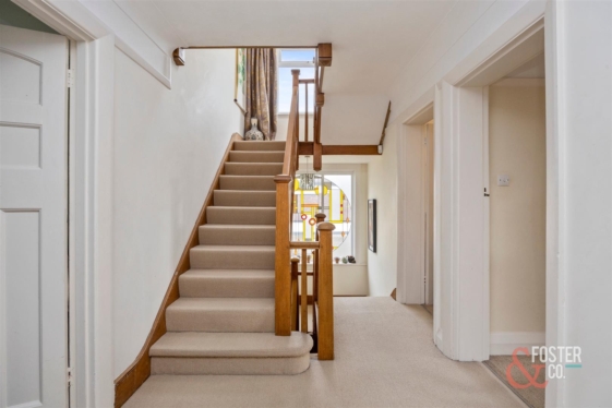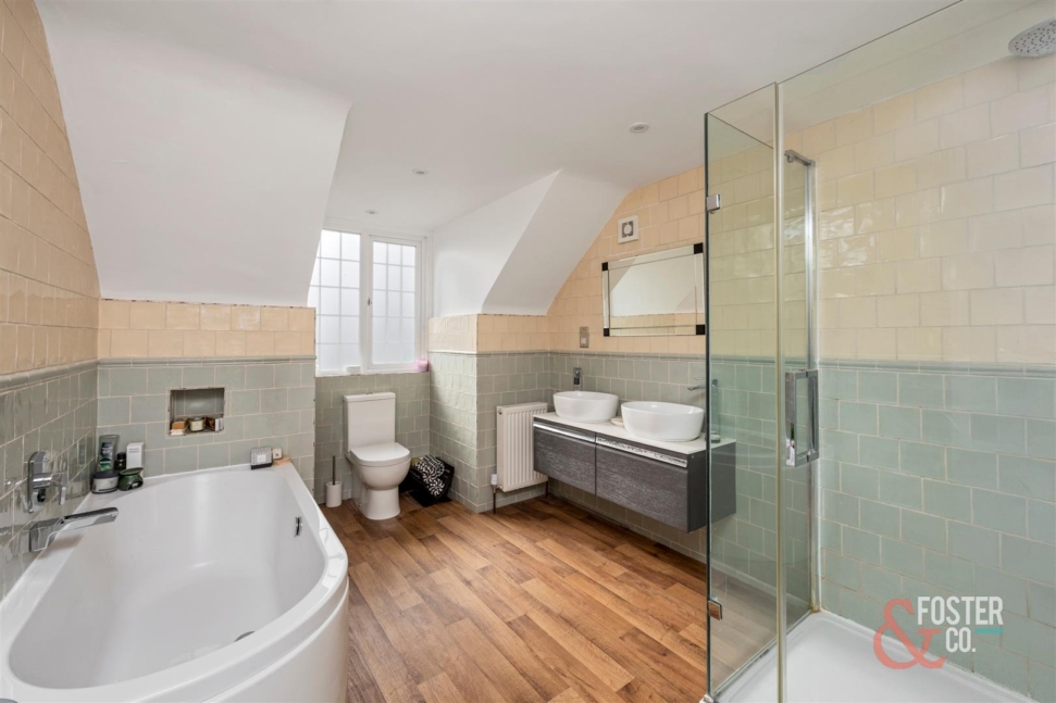 Successfully combining a wealth of original character with the comforts of modern living, the house features a large and welcoming wood panelled reception hallway with exposed oak herringbone floors, a large main sitting room with ornate detailed ceilings and feature fireplace and a wide oak staircase leading to a similarly spacious first floor landing.