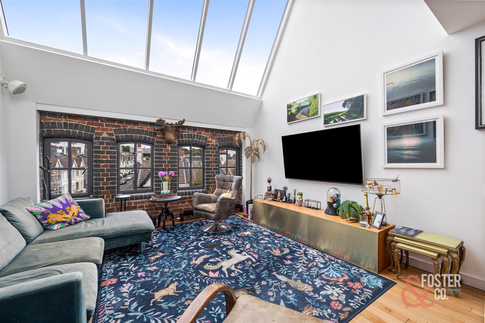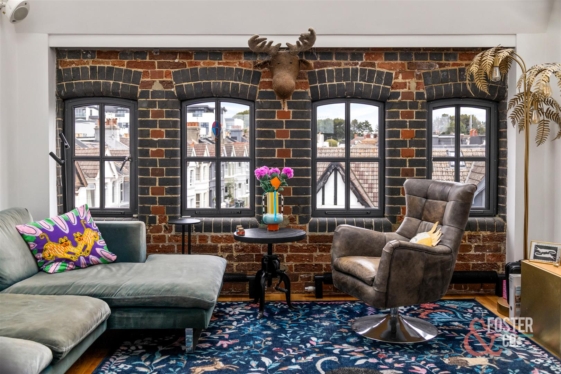 - Striking industrial features including exposed brickwork and arched factory windows