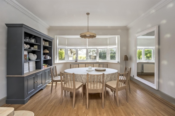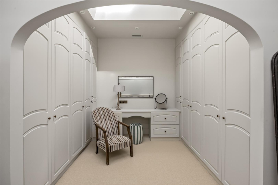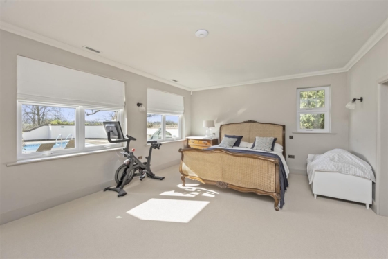 The south facing garden is laid mainly to lawn with a number of mature trees bordering the property. The walled “Mediterranean-style” patio area with heated swimming pool and pool house creates the perfect space for outside entertaining.