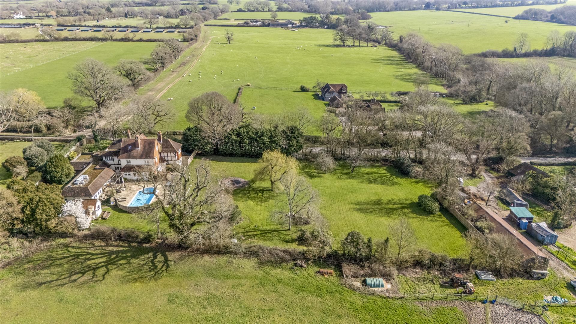 A beautifully presented, updated and improved, substantial six double bedroom period family home. Standing in a South facing plot of just under one and a half acres. Views of the South Downs National Park. Outdoor swimming pool, double garage. Scope to create...